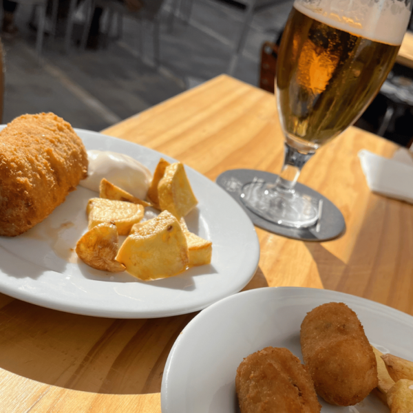 At Bar El Pupa, you’re given a small menu and a pen, and you simply mark your choices. 3-4 tapas are perfect for two slightly hungry adults, and you can always order more. We’ve tried and can recommend most dishes, but a quick order would always include a flamenquin, croquettas, revuelta de bacalao, and carrilladas, tender pork cheeks in a wonderful spiced sauce. Order a caña, a small beer, or a good glass of red wine.