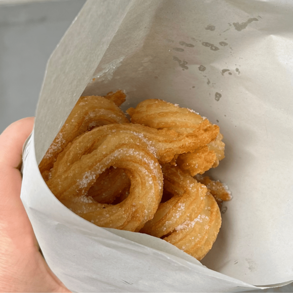 You can also try the crispiest churros every morning – except Sunday – at the two stalls right by the food market. For 1€, you get 8 delicious churros! The pictures below are from each of the three places, in chronological order.
