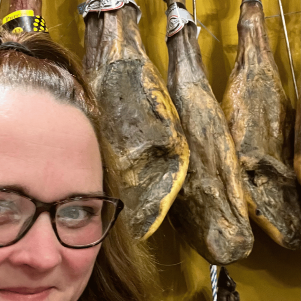 At Plaza la Lota near Meraki Tapas, there’s also a bustle at the watering hole, with several bars around. However, the coziest spot is around the corner at Delicatessen Merkajamón, which is a combination wine bar and charcuterie. If you haven’t had dinner yet, you can indulge in jamón, exquisite tapas, and delicious cheeses – and wash it down with a good glass of red wine or a sherry. If you want more, hams hang on the walls, and shelves and displays overflow with wines and cheeses that you can buy to take home.