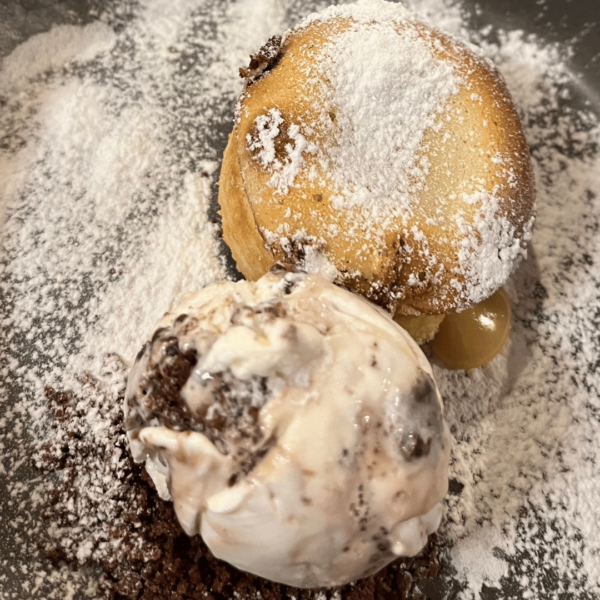 We chose three small starters, including a foie gras ice cream cone, all beautifully presented on wood, bone, or other lovely displays. Main courses included a fish and seafood lasagna, canelloni with oxtail, and finally, a lamb shoulder served as Peking duck, with small tortillas and various fillings. We planned to end with their mojito ice cream but had to admit defeat. It was SO delicious, and we’ll definitely be back!