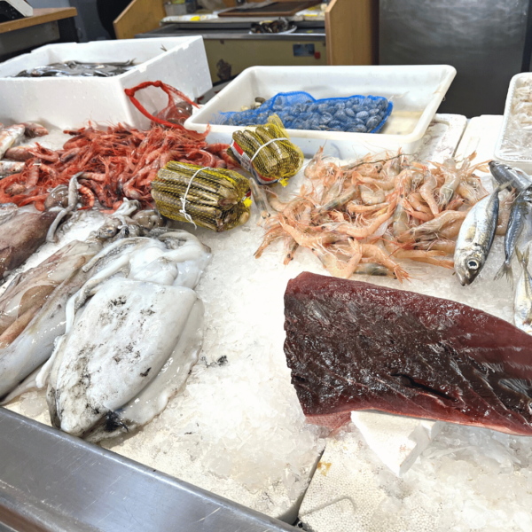 We only managed to visit the small fish bar El Artesano twice – mainly because there’s so little space that getting a seat is challenging. It’s open only for lunch, and the menu mainly features fresh fish. But oh… what fish! You can see the crispy portion of fried rosada that we enjoyed both times in the top photo and the selection in the fish display below.