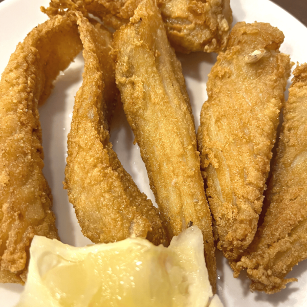 El Pulguilla is indeed a fantastic place, filled with lively atmosphere and the aroma of wonderful food. When you order a drink, preferably a small beer like the locals do, you choose a tapa from the board. This could be two small pieces of ray, a roll with sausage, or small fried fish. This way, we got to taste ray, horse mackerel, and rosada, the red fish. You can also order tapas in full or half portions, but the tapas that come with 2-3 beers are more than enough to fill you up. And it’s not expensive. For four small beers with accompanying tapas, a half portion of ray, and a half portion of berenjenas (fried eggplant), we spent about 20 euros.
